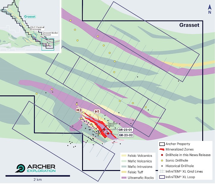 VANCOUVER, BC, April 6, 2023 – Archer Exploration Corp. (CSE: RCHR) (the “Company” or “Archer Exploration”) is pleased to provide an update on its 2023 winter drilling program at its 100% owned Grasset Nickel Project (“Grasset”) located in the Abitibi Greenstone Belt of Quebec, Canada. The Company is progressing with its winter exploration program, including drilling, geophysics and basal till sampling (see new release dated February 1, 2023).